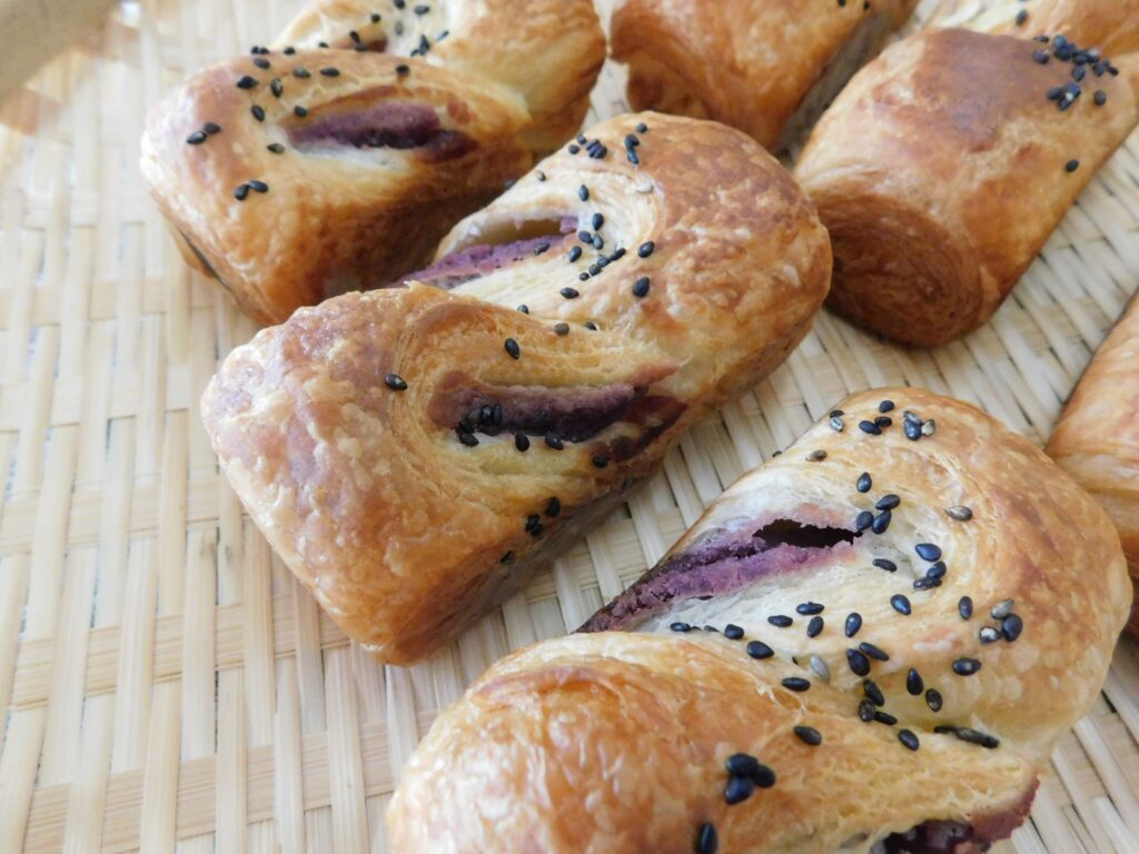 鹿児島県産紫いもあんを練り込んだ色彩豊かな一品。