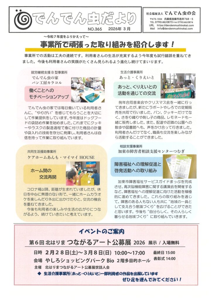 でんでん虫だより3月号を発行いたしましたので、ご一読いただけますと幸いです。